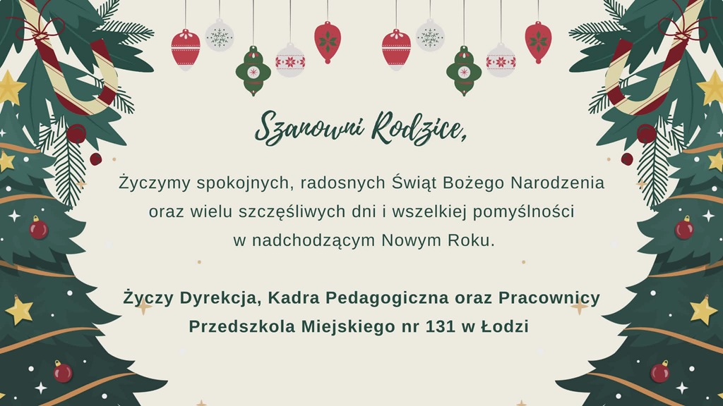 Życzy Dyrekcja, Grono Pedagogiczne oraz Pracownicy Przedszkola Miejskiego nr 131 w Łodzi