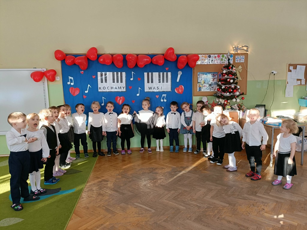 Przedszkolaki z zaangażowaniem i radością prezentowały swoje umiejętności, a uśmiechy Babć i Dziadków były najlepszym dowodem na to, jak bardzo podobał im się występ. Po części artystycznej dzieci złożyły serdeczne życzenia i wręczyły własnoręcznie przygotowane upominki, które wywołały wiele wzruszeń.