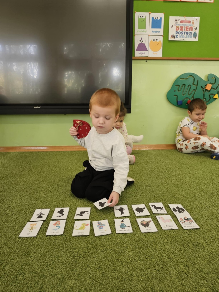 W tym dniu dzieci z grupy I "Biedronki" rozpoznawały bajkowe postacie i tytuły bajek po rekwizytach. Układały bajkowe puzzle i dopasowywały odpowiednie cienie do bohaterów z bajek. Rozwiązywały bajkowe zagadki jak i wykonywały bajkowe zadania. Każde dziecko wykonało pracę plastyczną pt."Kot w butach". Dzieci z grupy ""Biedronki" świetnie znają bajki i rewelacyjnie poradziły sobie z zadaniami.