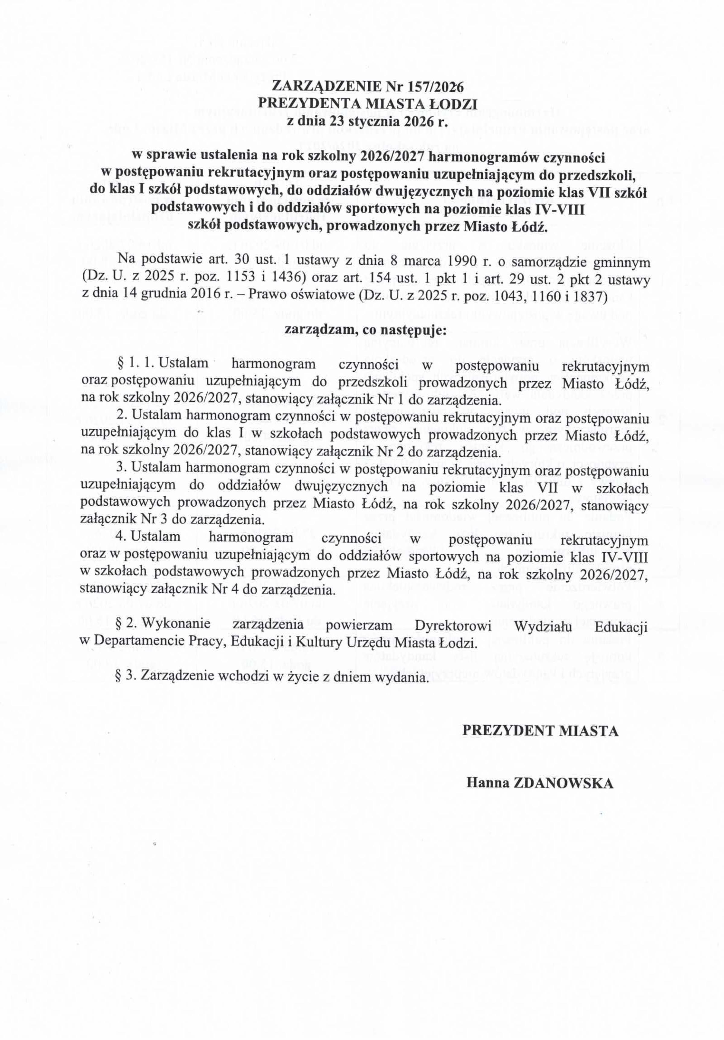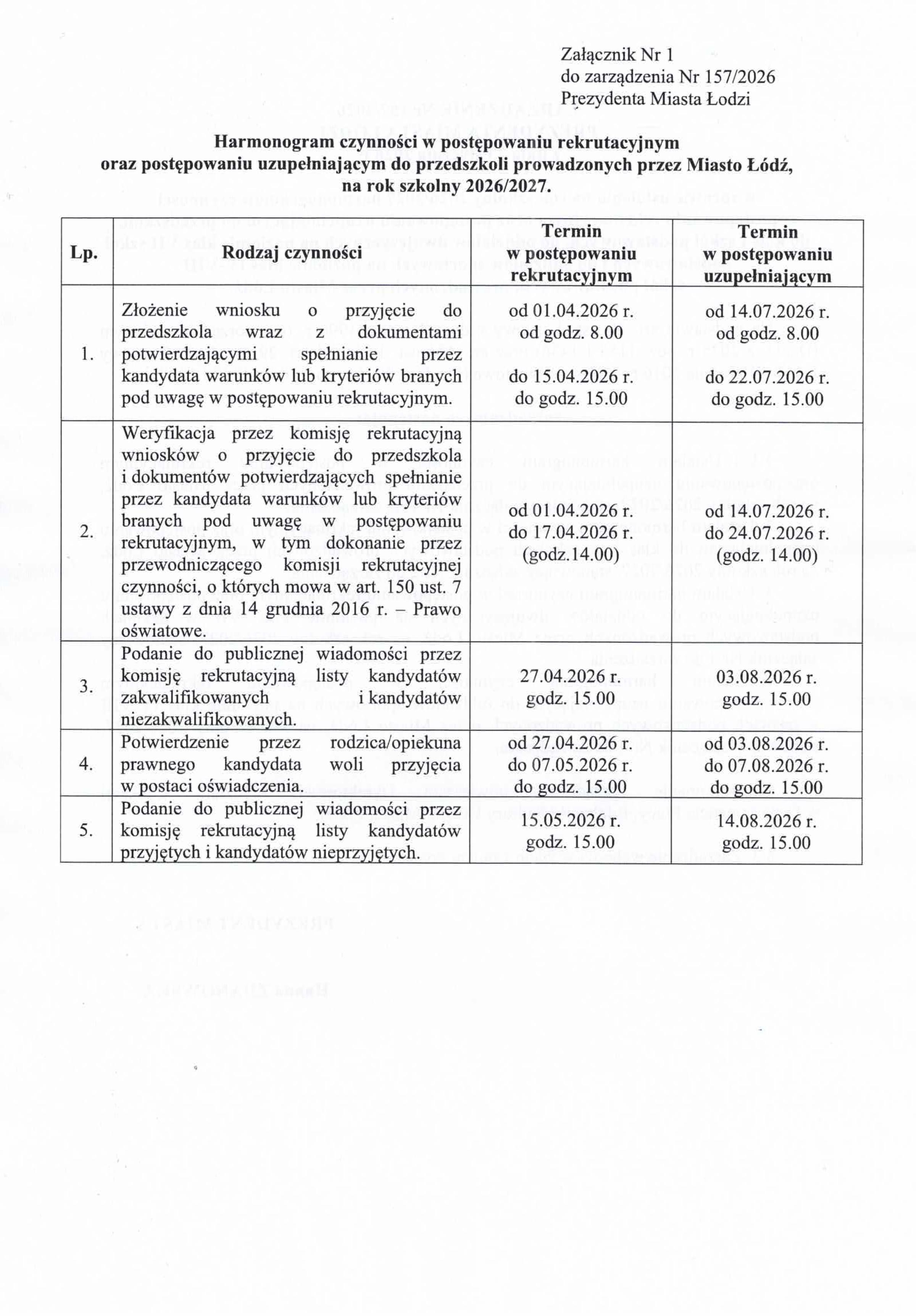 Harmonogram postępowania rekrutacyjnego