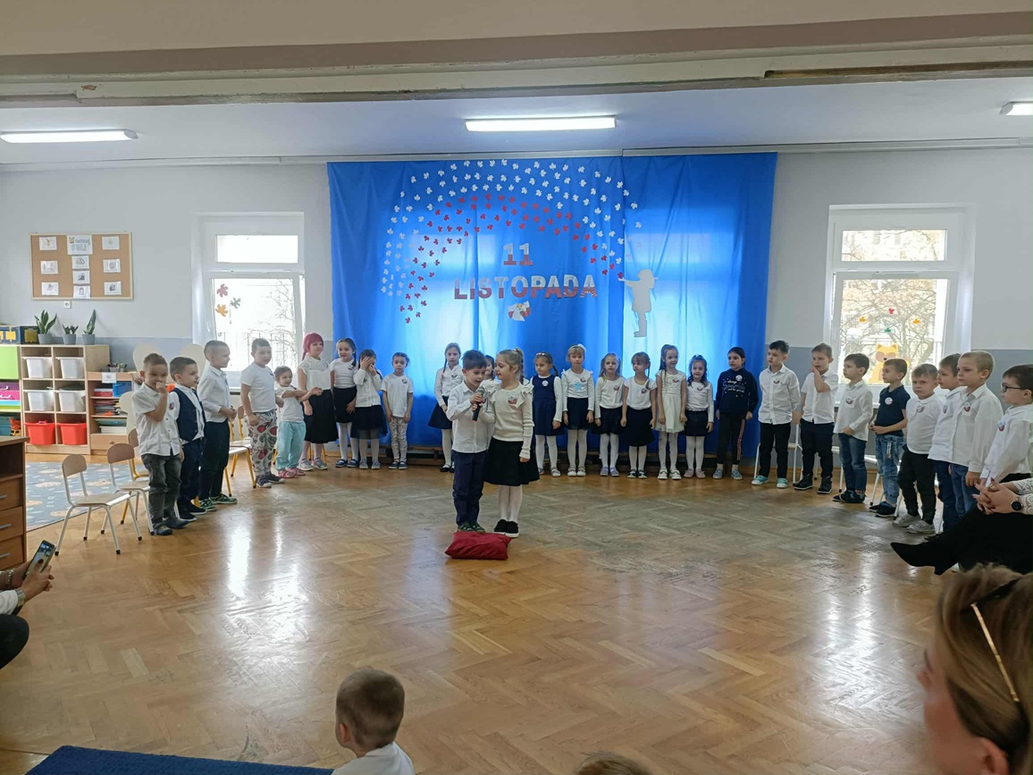 W naszym przedszkolu zorganizowano wyjątkowe obchody Święta Niepodległości, które miały miejsce 12 i 13 listopada. Dzieci miały okazję wziąć udział w uroczystym apelu, który przybliżył im historię i znaczenie tego ważnego dnia. Wspólnie śpiewano hymn, co pozwoliło zrozumieć, jak ważna jest nasza historia i kultura.