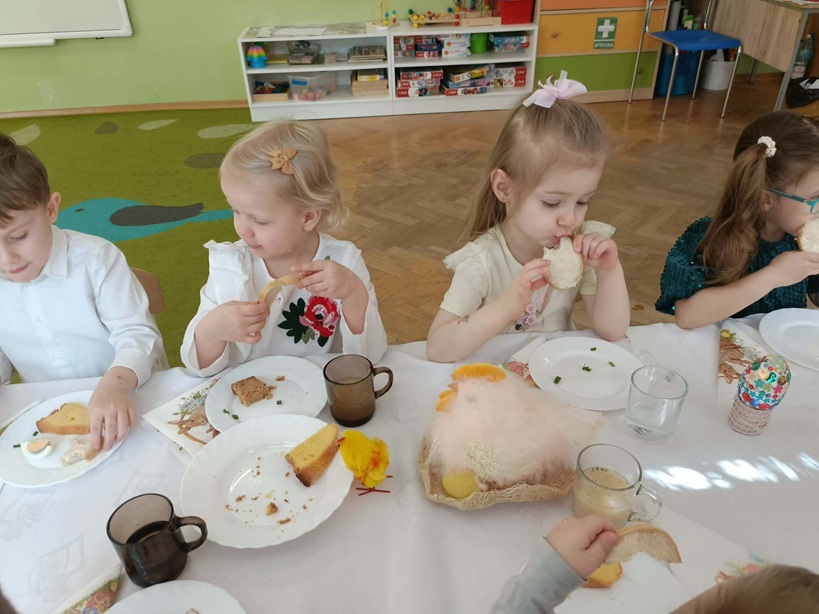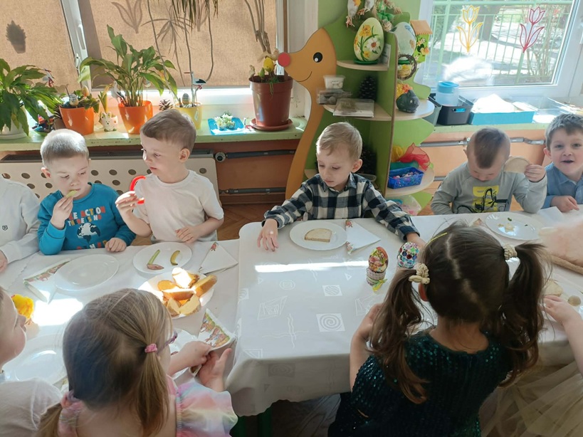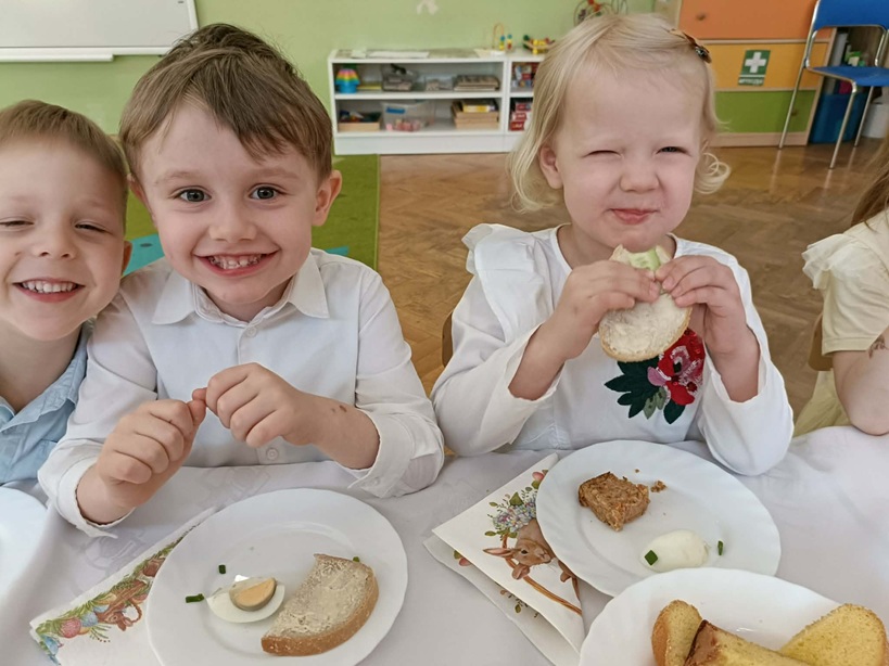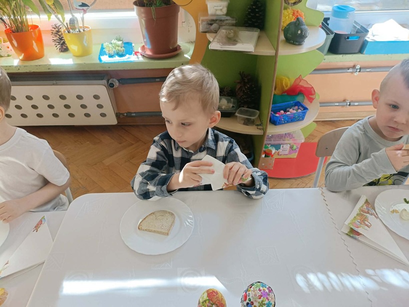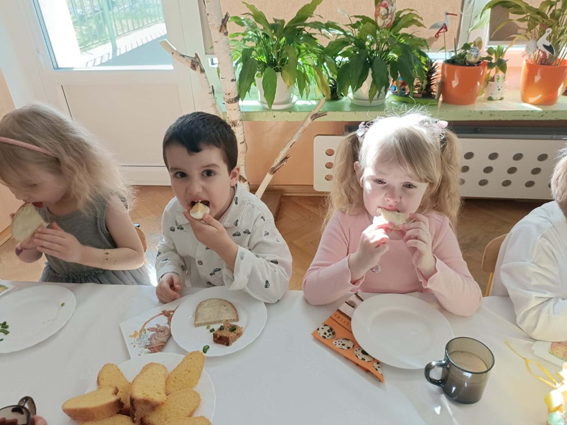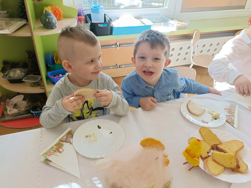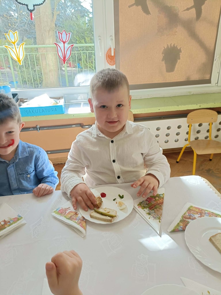 W naszej grupie odbyło się wyjątkowe Śniadanie wielkanocne, które wprowadziło nas w radosny, świąteczny nastrój. Dzieci z ogromnym zaangażowaniem przygotowywały się do tego dnia – poznawały tradycje wielkanocne, dekorowały salę oraz pomagały w przygotowaniu stołu. Na pięknie przystrojonym stole pojawiły się tradycyjne potrawy, a wspólne śniadanie było doskonałą okazją do rozmów, dzielenia się radością i budowania relacji. Nie zabrakło również świątecznych zabaw i uśmiechów. To był czas pełen ciepła, życzliwości i wspólnego świętowania.