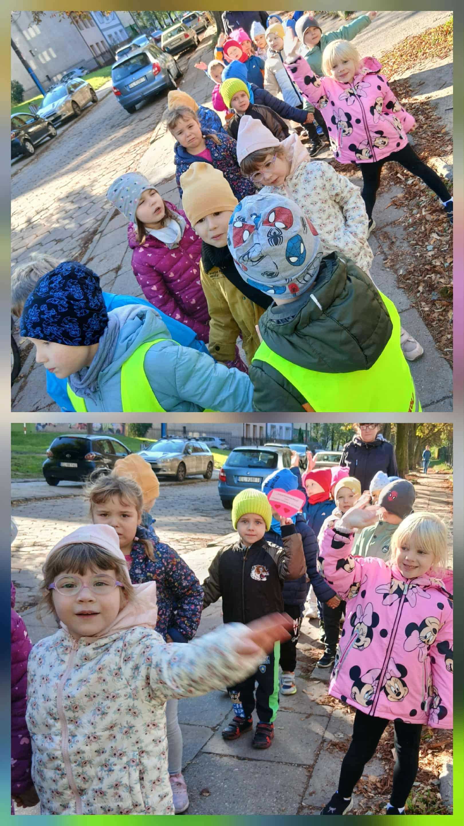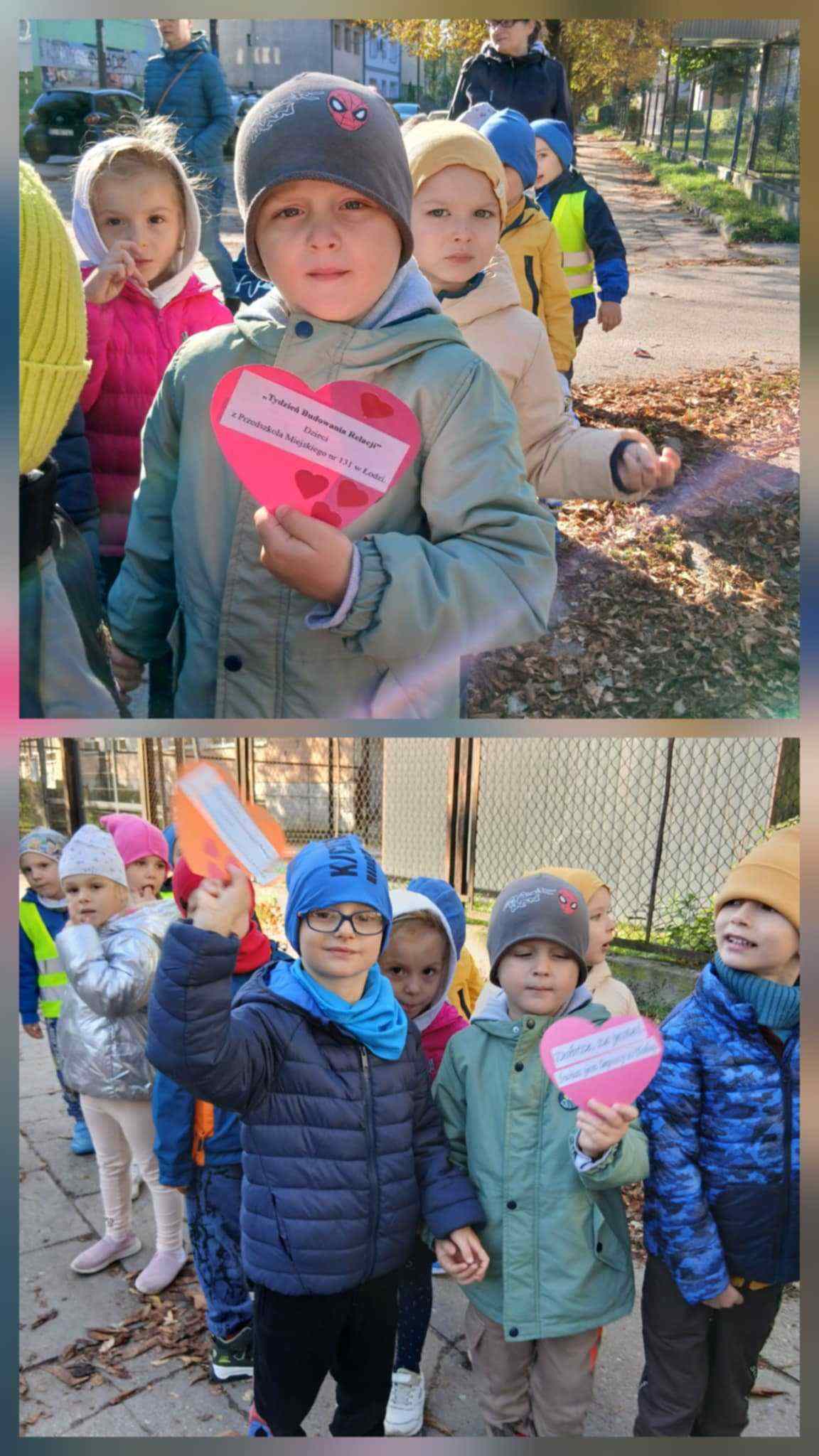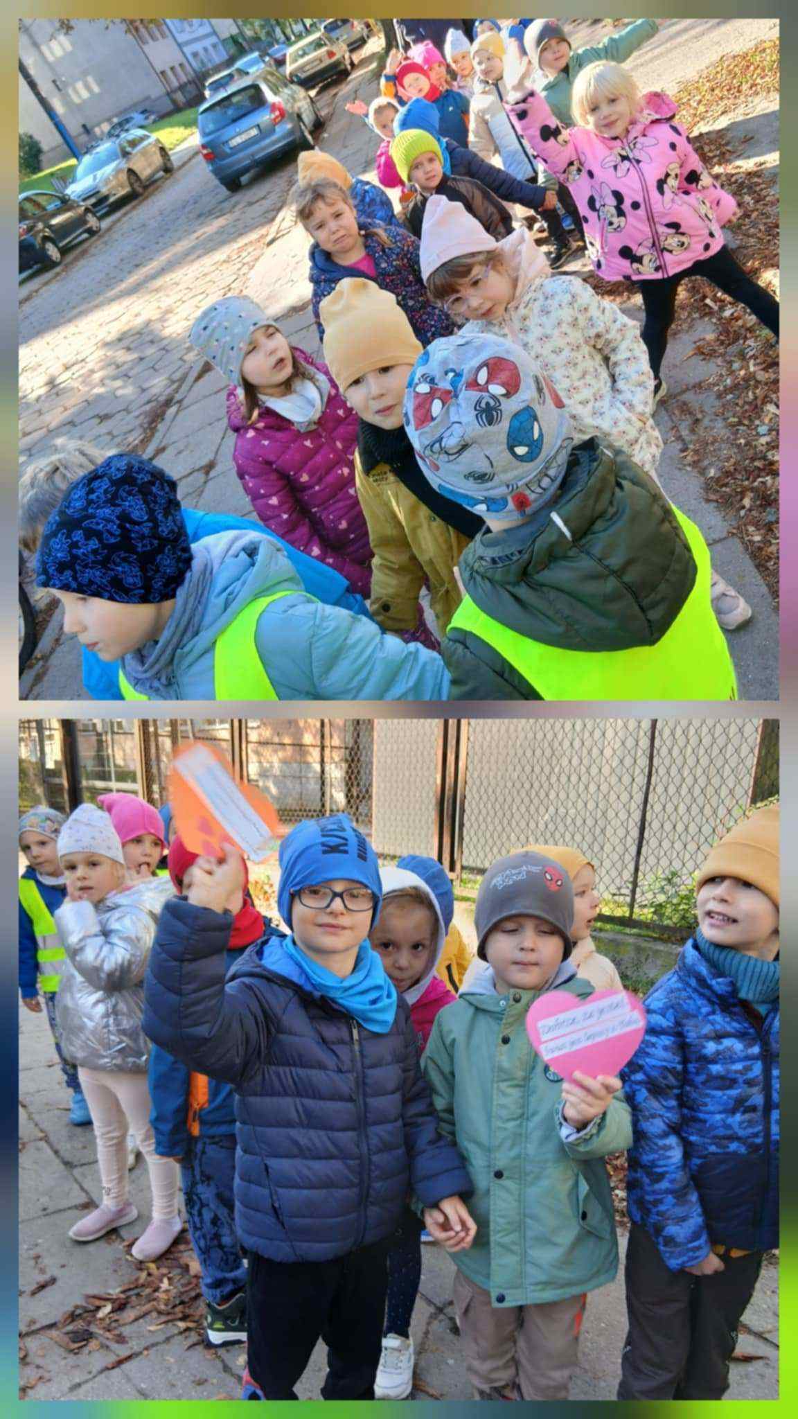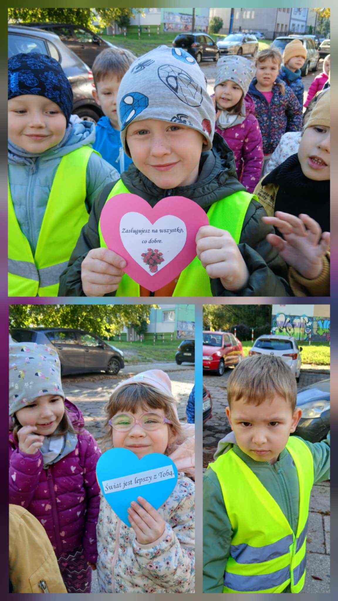 Nasza grupa wraz z Panią Ewą wyszła na spacer wokół przedszkola aby wręczyć przechodnią serduszko z miłą sentencją.