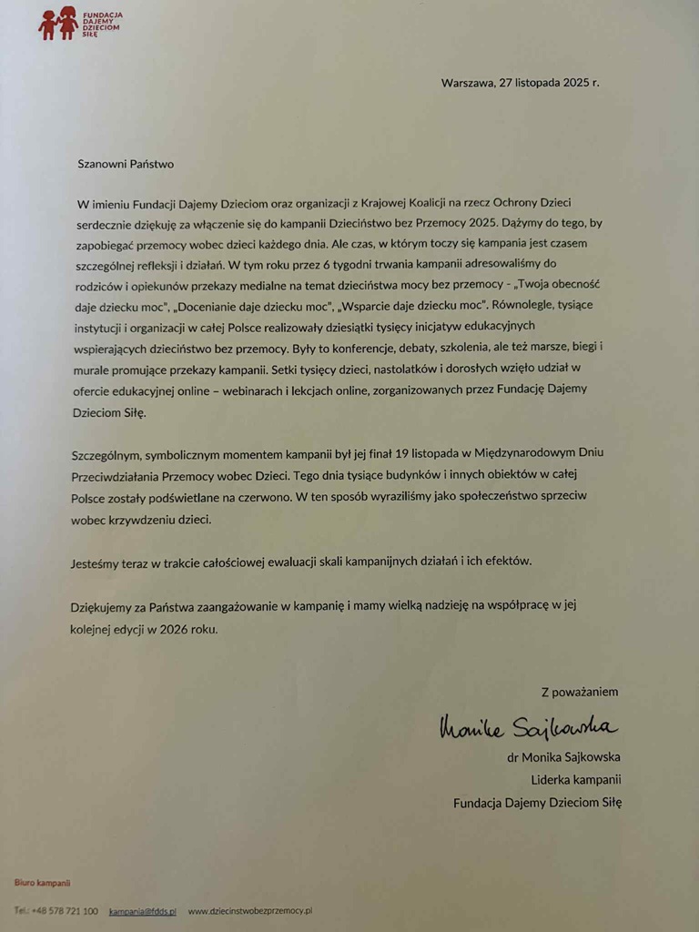 Udział w kampanii "Dzieciństwo bez Przemocy 2025"