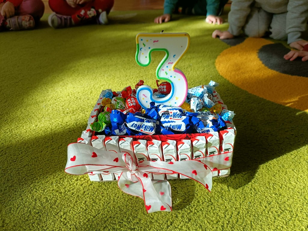 Dziękujemy za słodki poczęstunek i wspólne świętowanie. Naszej Jubilatce życzymy dużo radości, spełnienia marzeń, samych pogodnych dni oraz wielu wspaniałych przygód w przedszkolu!