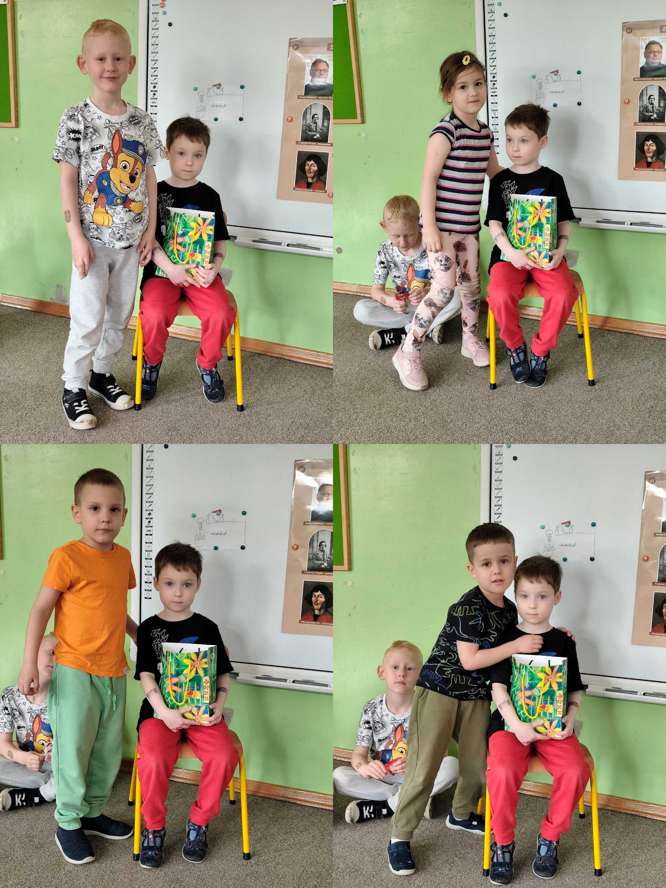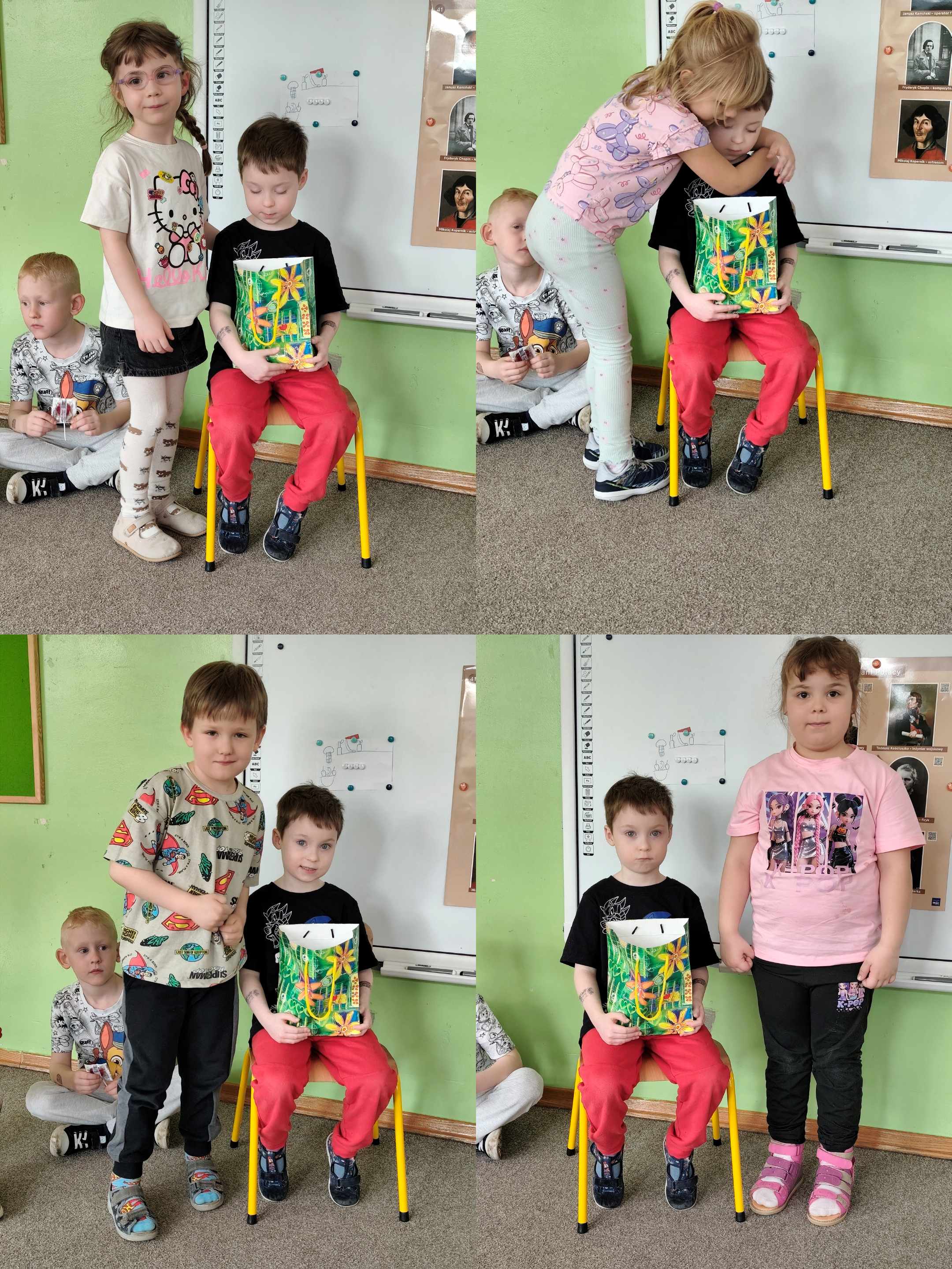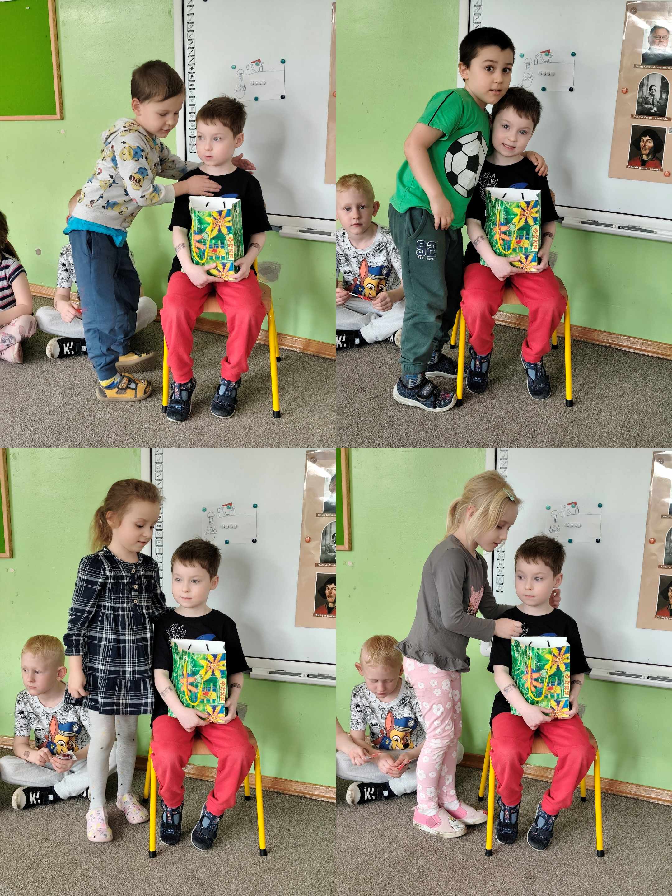 Naszemu Drogiemu Kacperkowi składamy jeszcze raz urodzinowe życzenia: Przygód Wspaniałych,przyjaciół doskonałych,snów kolorowych,zabaw szalonych,mnóstwo radości,I góry słodkości!?Sto lat!!! od przyjaciół z grupy.