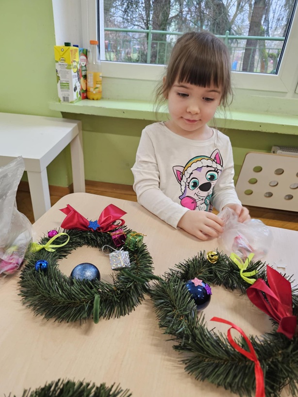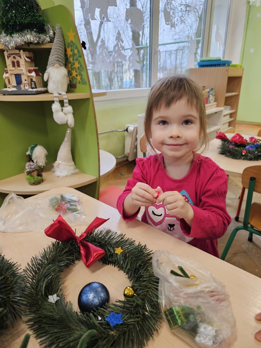 Dnia 15 grudnia w grupie "Biedronki" odbyły się wyjątkowe warsztaty z dekorowania świątecznych wianków. Było to niezwykle twórcze i radosne spotkanie, podczas którego dzieci mogły poczuć magię zbliżających się Świąt.