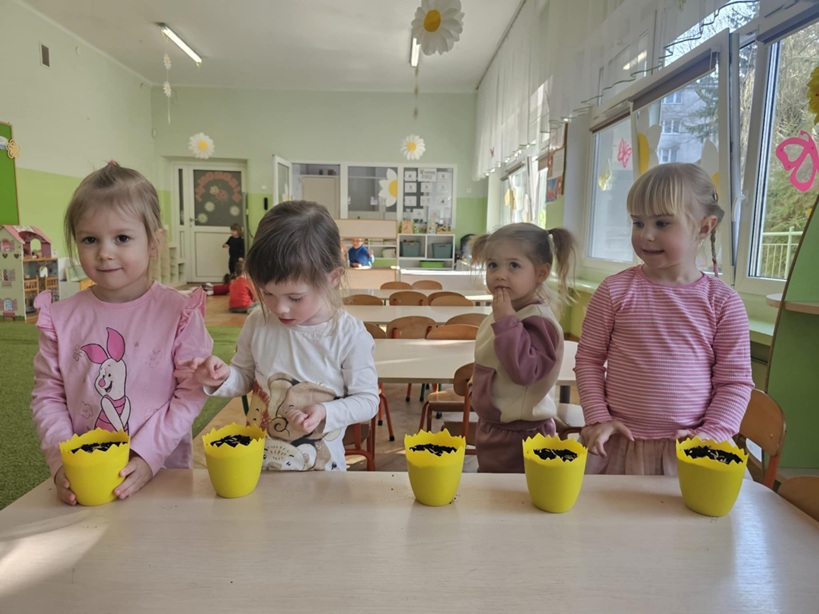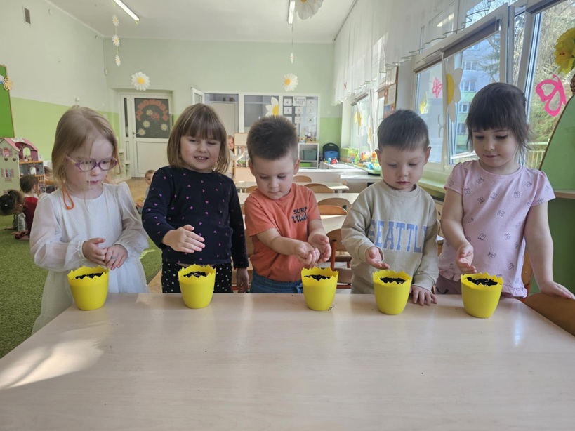 Wiosna zawitała do nas na dobre, a wraz z nią rozpoczęliśmy przygotowania do Świąt Wielkanocnych. Jednym z naszych ulubionych zajęć było wspólne sianie owsa – pięknej, zielonej ozdoby wielkanocnych stołów.