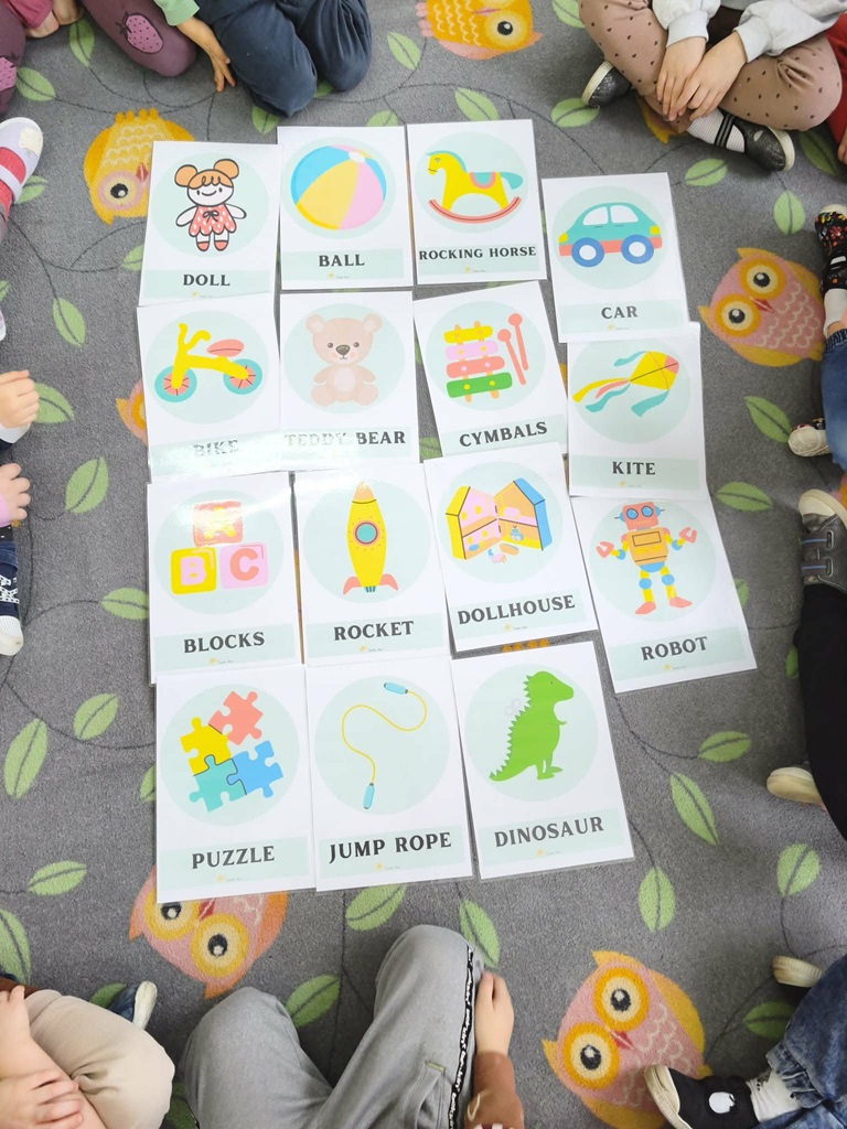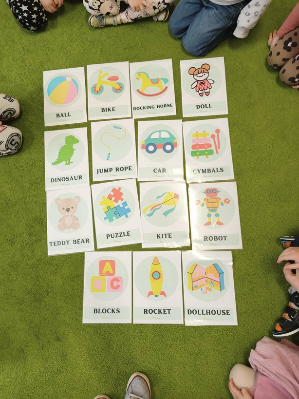 Podczas ostatnich zajęć nasze przedszkolaki poznawały nowe słownictwo związane z zabawkami, takie jak a doll, a ball, a car, a teddy bear i wiele innych. Dzieci oglądały historyjkę obrazkową „Steve & Maggie”, śpiewały piosenkę „I have a toy” oraz brały udział w tematycznych grach i zabawach ruchowych, które utrwalały poznane słowa w praktyce. Zajęcia były pełne śmiechu, ruchu i muzyki, dzięki czemu przedszkolaki w naturalny i przyjemny sposób uczyły się języka angielskiego, rozwijając przy tym kreatywność, koordynację i umiejętności społeczne.